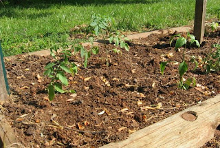 A couple more tomato plants and a pepper plant. I'll have to get all the tomatoes staked up soon. We also have zucchini, squash, cantalope, and some herbs growing. I can't wait for that first tomato sandwich of the year.