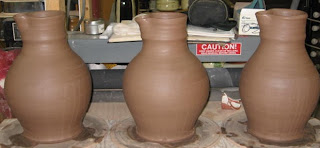 Jugs pt. 2 August 01, 2008 in Uncategorized This is as far as I got on the jugs today. I'll let the tops set up and get the handles on next.