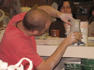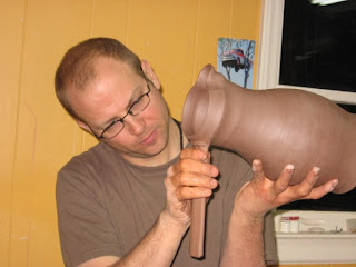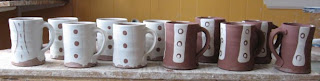 As I made my stoneware pots this week I noticed how I handle that material differently than have been handling the earthenware. Of course this makes sense as I know the stoneware pots intimately, I know they are going to get slipped, and go into the kiln for their final decoration...salt, soda, flame, flashing. The stoneware pots are gestural, carefree, casual. Those are words that come to mind.